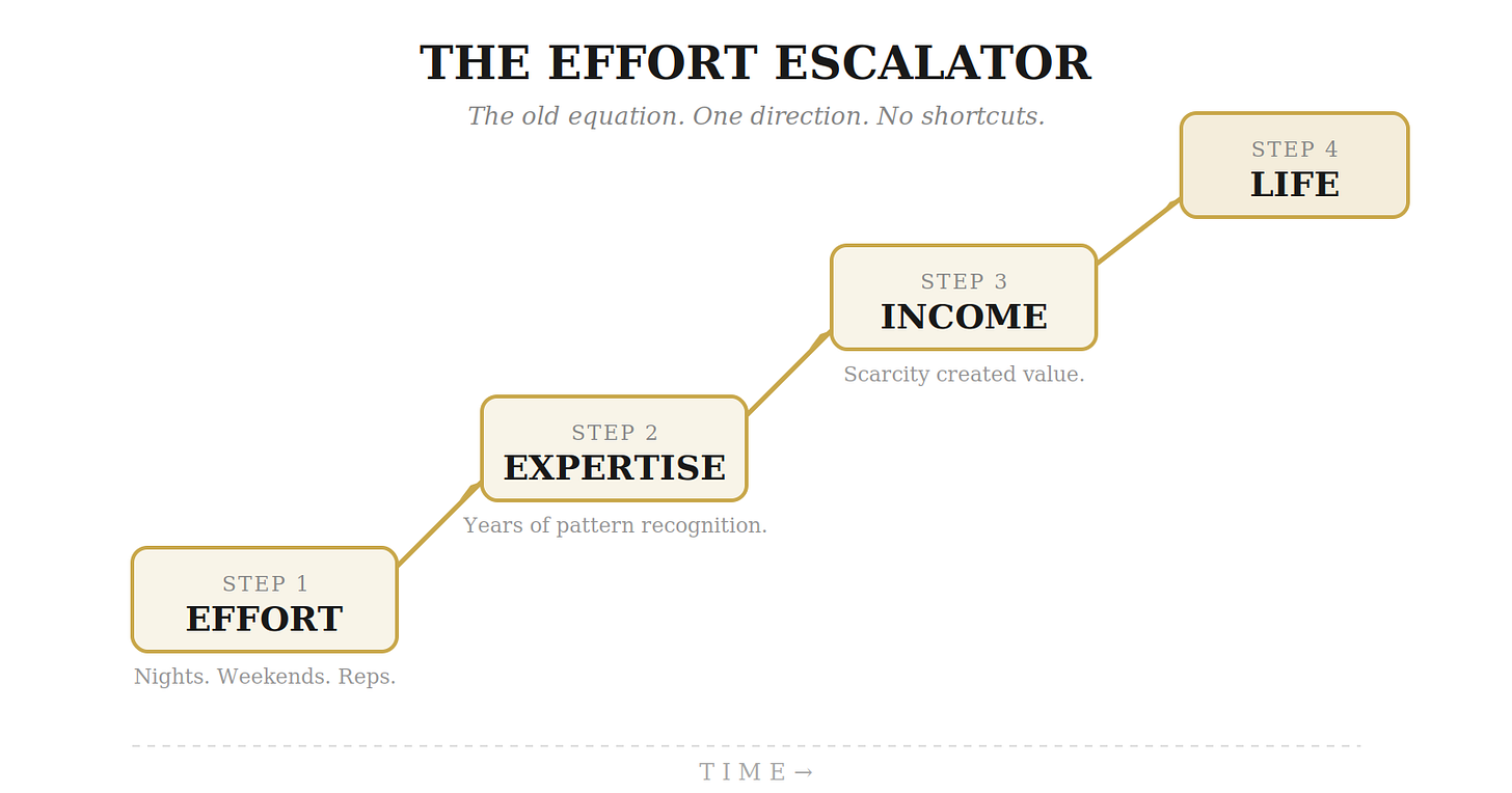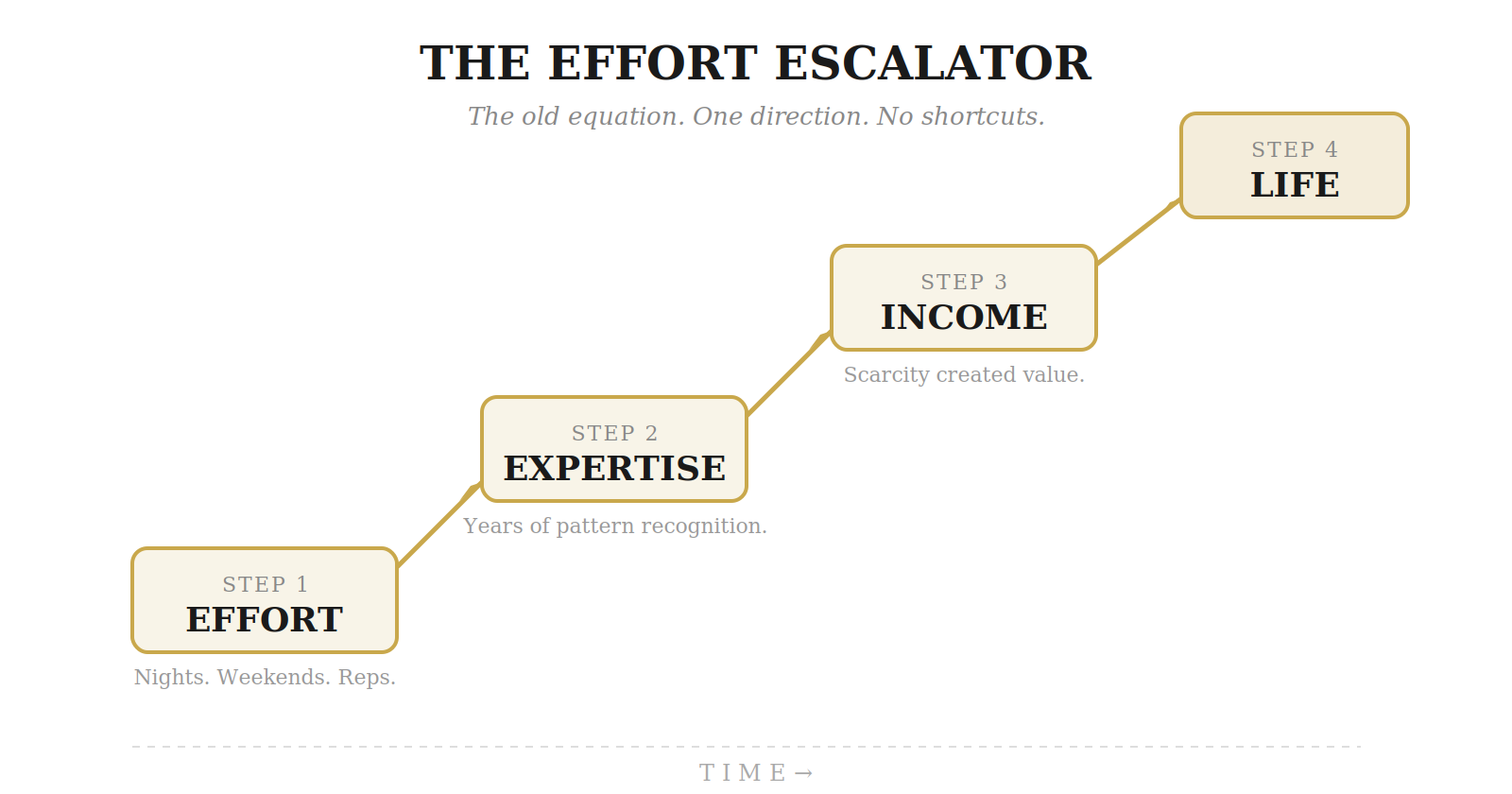 Hard work → Expertise → Income → Life becomes Hard work → ??? → Income → Life.