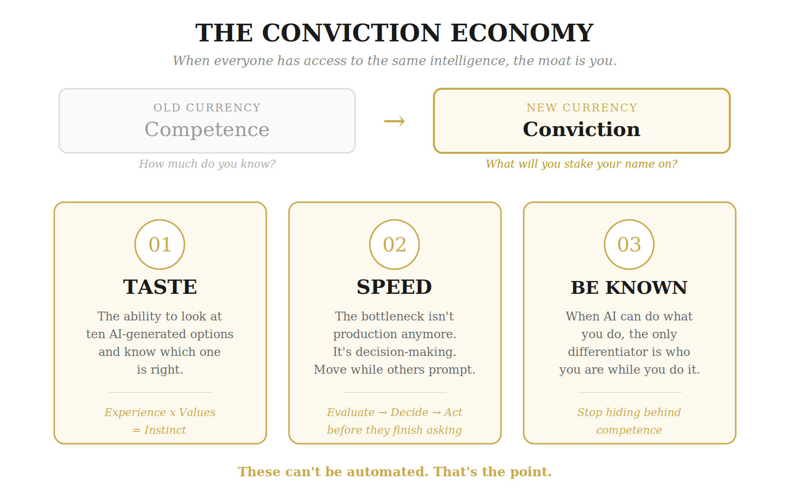If the Conviction Economy is real, and I believe it is. then three skills become disproportionately valuable: